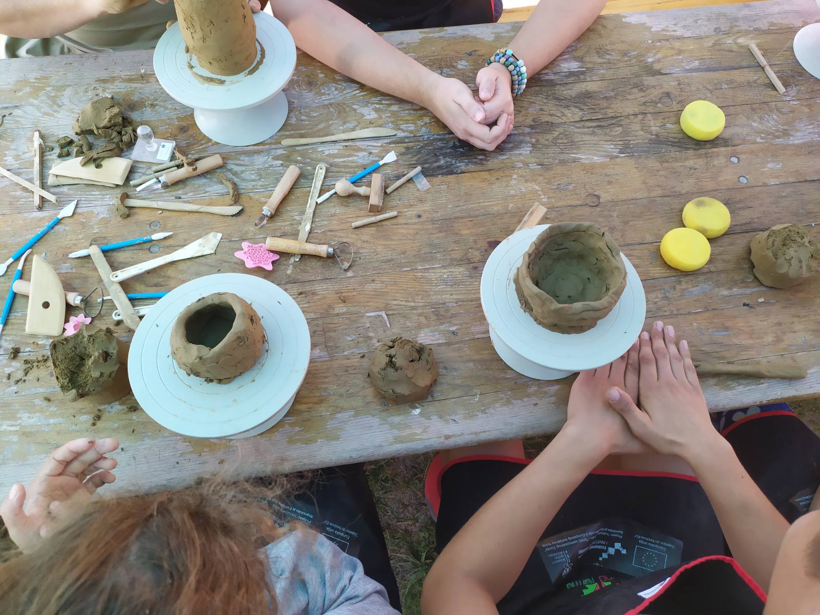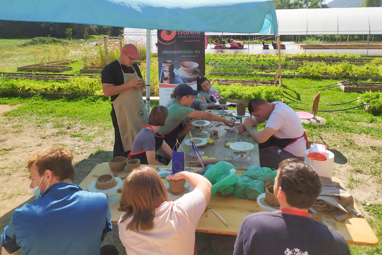 Kako bi se što bolje povezao sa zajednicom, Otvoreni keramički atelje je "prošetao" do idilične zelene doline ispod Hrastovačke gore. Tu se smjestila Inkluzivna farma koju vode Zeleno zlato i Udruga osoba s invaliditetom Sisačko-moslavačke županije koja je naš projektni partner. Ljepše vrijeme i bolje mjesto za radionicu oblikovanja gline nismo mogli zamisliti!