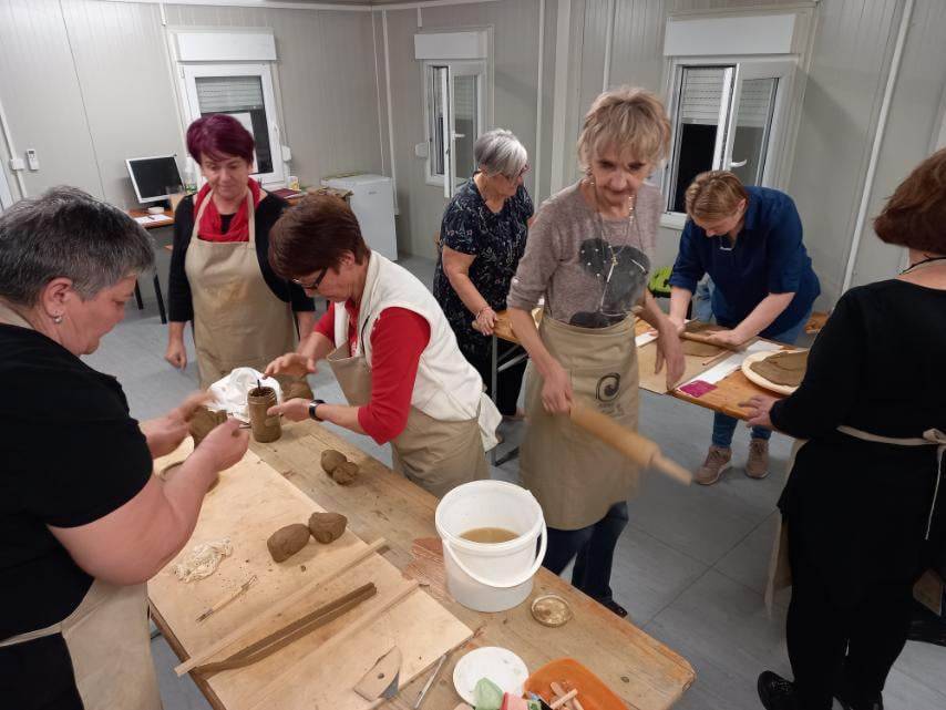 Marijana nam je pričala kako se izradom keramike počela baviti prije dvije godine, na online tečaju Keramika 54+ koji je organizirala udruga GRAK. Učitelj joj je bio petrinjski lončar Valentino Valent. U međuvremenu je puno naučila i evo, danas je podučavala druge. Kada se dijeli, znanje se množi ❤