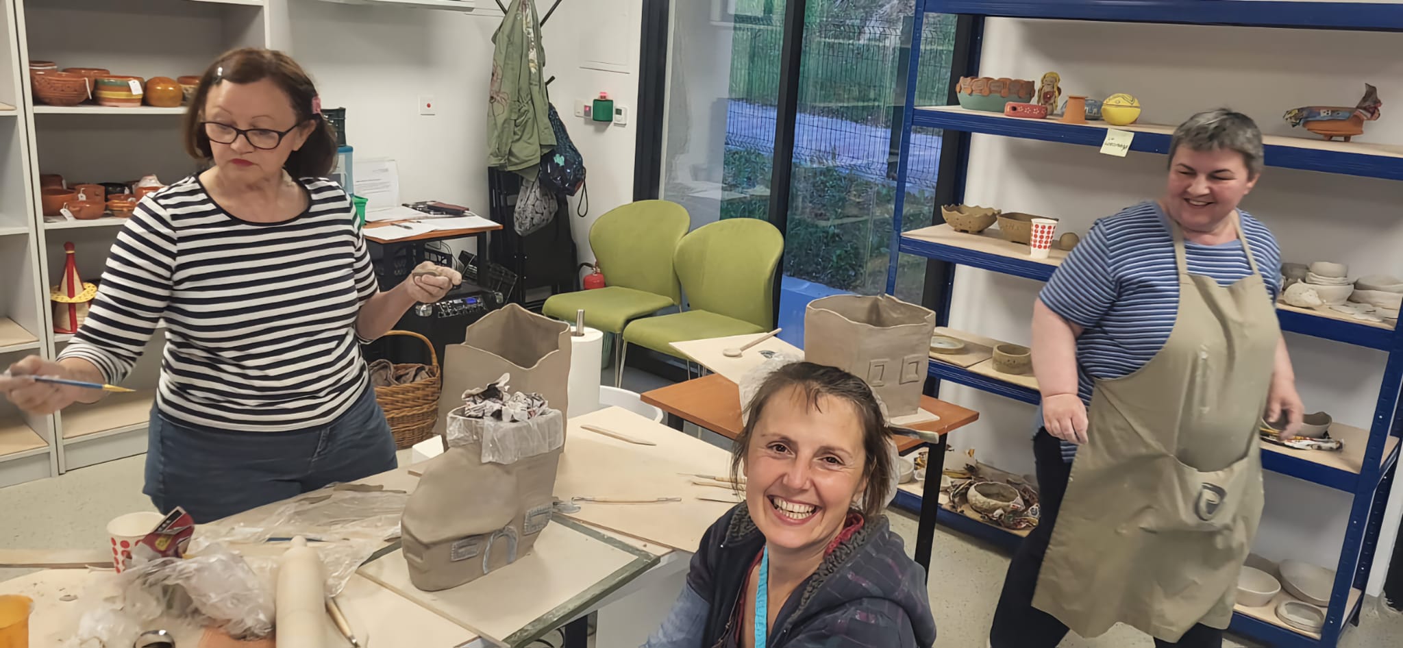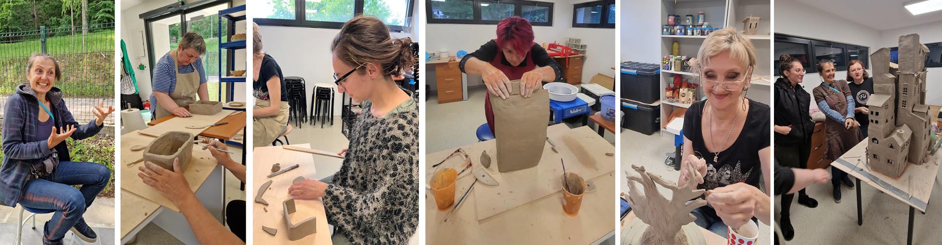 Iva je došla iz Zagreba kako bi barem par sati radila s nama, dok je njen muž ispred ateljea zabavljao njihovu bebicu. Lana je s posla dojurila u atelje. Manda je propustila trening kako bi ostala duže s nama. Goga je propustila jogu jer se nije mogla odvojiti od kuće koju gradi. Višnja je također stalno s nama. Dijana je došla kasnije pa je gradila manju kuću. Palma je stalno tu. Uvečer nas je obišla i Kristina Suppe, direktorica Turističke zajednice Grada Petrinje koja je s Udrugom GRAK organizator ovih radionica.